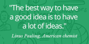 The next time you’re faced with an opportunity for ideation, give yourself the best chance for success by playing the numbers game. For every issue considered, don’t stop until you’ve captured at least five ideas. Even if you think you’ve found the answer in the first or second idea…keep going and see where the process takes you. Fill your whiteboard with bad ideas to increase your odds of finding a truly good one.